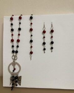 Kim güzel takı takmak istemez ki? Takıların yalnızca bir aksesuar değil, kişisel tarzın güçlü bir yansımasıdır. Kendi yaptığım bordo ve siyah sevenler için kolye. Kolye küpe ve bileklikten oluşmaktadır. Zarif ve şık her kombine gider.
